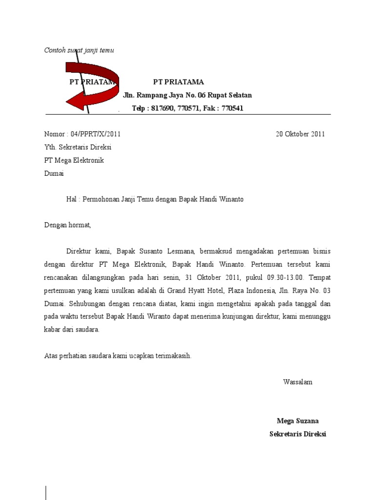 Contoh surat dinas janji temu. Contoh SURAT PERMOHONAN JANJI TEMU. Pt crash brother tbk. Post navigation Surat ucapan selamat via e-mail.