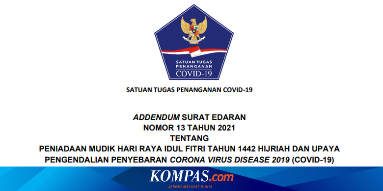 Addendum Surat Edaran Kepala Satuan Tugas Nomor 13 Tahun 2021 Larangan Mudik Hari Raya Idul Fitri Dan Pengendalian Covid 19 Selama Bulan Suci Ramadhan 1442h Regulasi Covid19 Go Id
