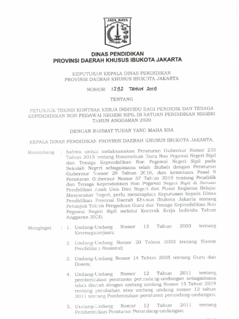 Memiliki Surat Perjanjian Kerja SPK sebagai Guru Bantu. Data Guru Kontrak Kerja Individu KKI Dinas Pendidikan Provinsi DKI Jakarta tahun 2019 dan 2020. Organisasi pada jakarta open data merupakan unit kerja pemerintah provinsi dki jakarta.