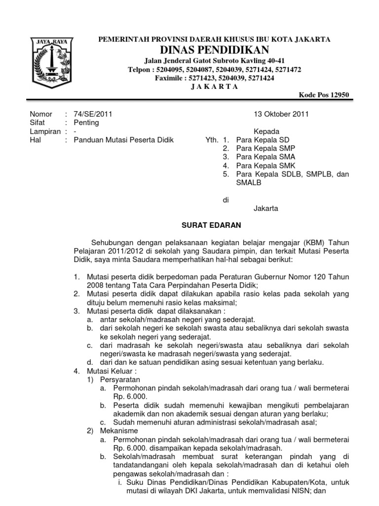 Smp Negeri 60 Edaran Dinas Pendidikan Provinsi Dki Jakarta Surat Edaran No 98 Se 2017 Tentang Perubahan Surat Edaran No 93 Se. Contoh Surat Tugas Dinas. Taman Jatibaru No1 Jakarta Pusat.